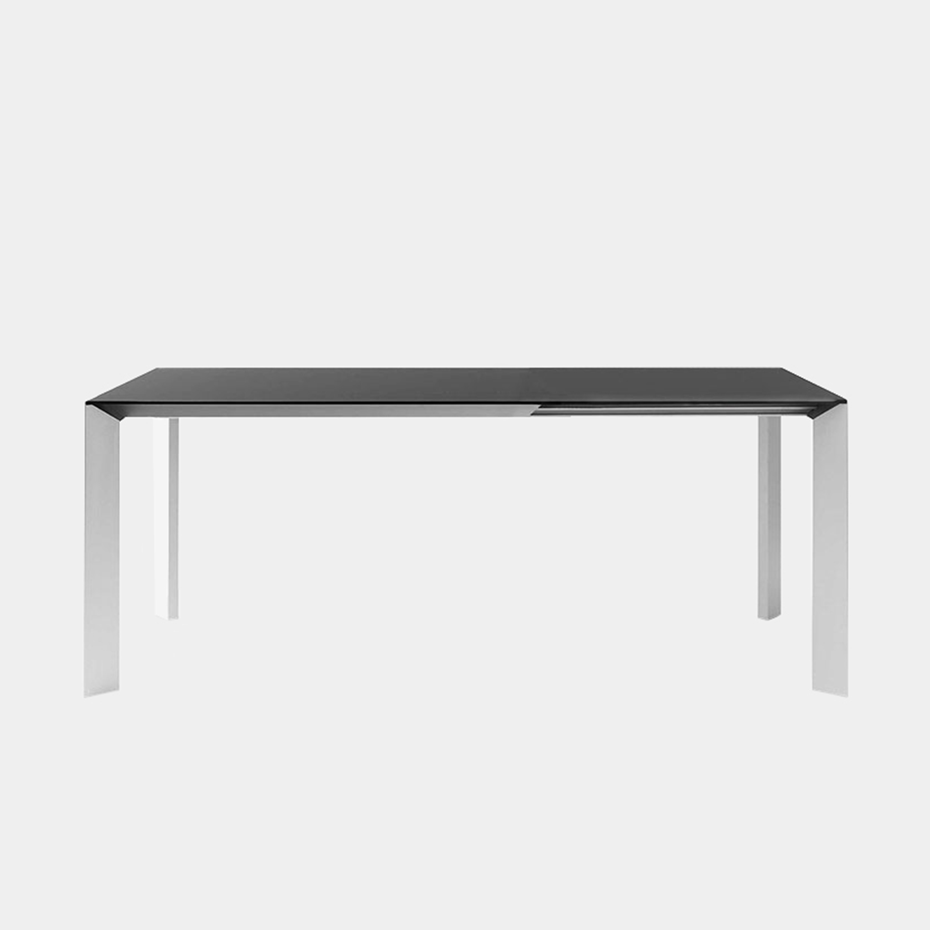 An evolution of Sushi, Nori is also a fixed or extendable table available in a wide range of sizes and finishes. But Nori has a different design for its legs, which have a sharp cross-section that gives them a more dynamic look. The top, made of cutting-edge materials such as Alucompact® and Pure-white laminates, Fenix-NTM®, DEKTON® by Cosentino, and gloss or matt glass, is narrow yet highly resistant. Thanks to the quality design project and the complex technology used, Nori tables are also available in large sizes without losing their lightness and stability.