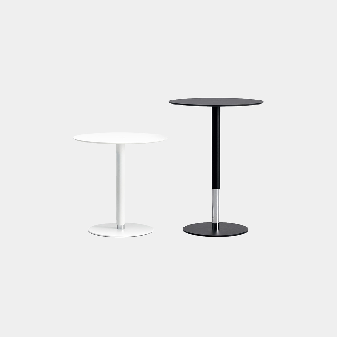 The name says it all (Push the Button): just press the button in the centre of the top to adjust the height of this occasional table. Ideal next to a sofa, it has a round top and base, held together by a central column that conceals a gas mechanism. This furnishing accessory is simple, minimalist and functional.